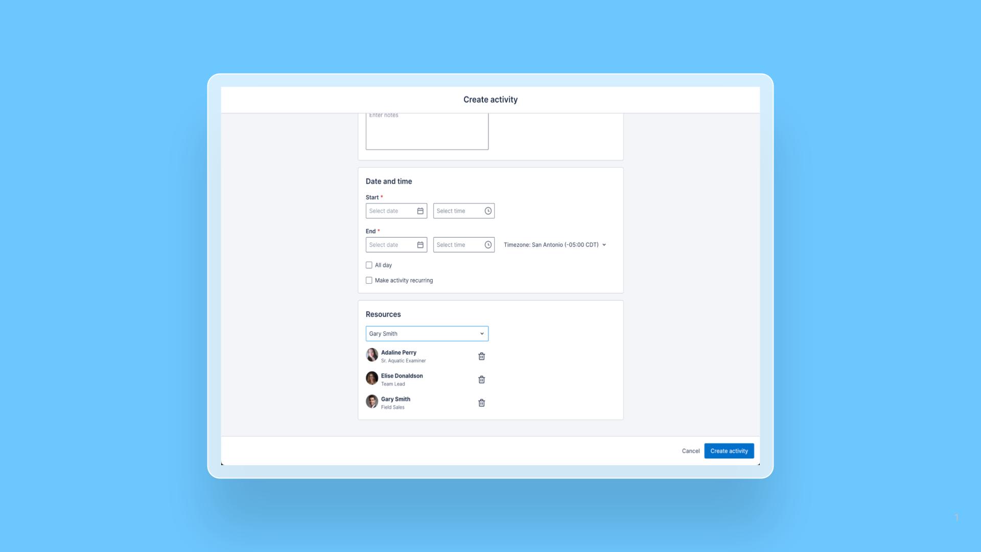 Manage with ease – View, add, or remove Resources directly from the Activity details page.